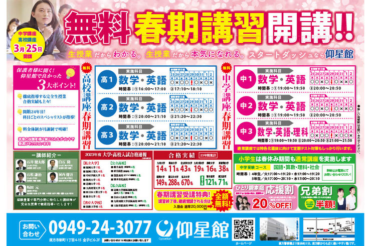 2024年度 春期講習開講のお知らせ | 直方の塾・仰星館は期間限定講習や各種割引に関する情報をお届けしています
